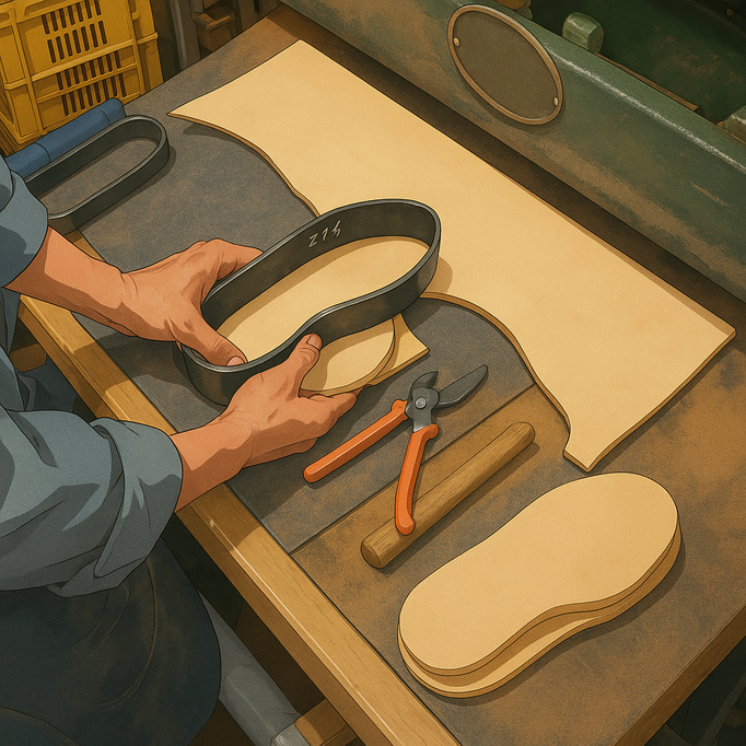 日本革底センター株式会社は、イタリアより高品質な牛のなめし革(ベンズ)を直輸入し、国内の靴メーカー様向けに靴底材料および各種パーツとして加工・販売を行っております。